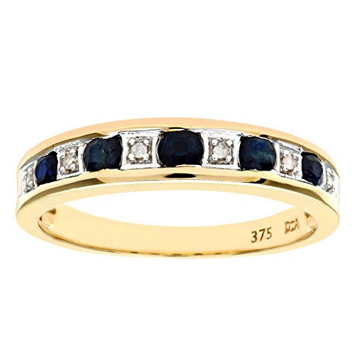 Naava 9 Ct Yellow Gold Engagement Rings with Diamonds and Sapphires, Classic Eternity Ring with Plain Band & Certified Gemstones - Perfect Engagement Ring or Wedding Ring