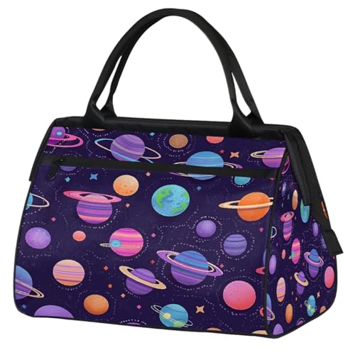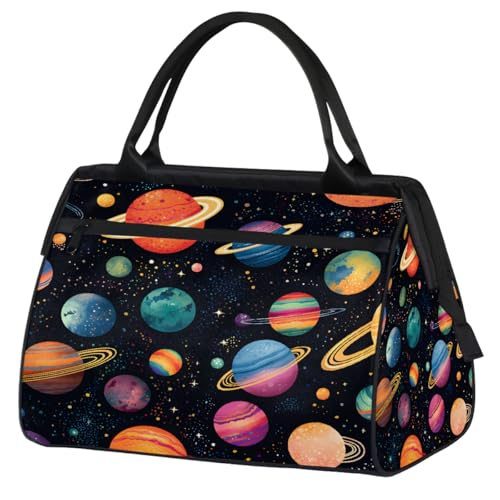 Mexpekil Sports Duffel Bag Olorful Space Planet Gym Tote Bag Large Waterproof Travel Overnight Bags for Women Men Camping Dance Yoga Football Swimming