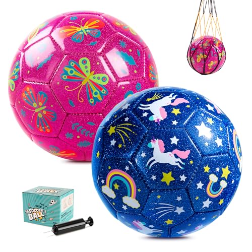U&C Planet 2 Pack Size 2 Football for Kids Ages 1-6 Unicorn & Butterfly Design Includes 1 Hand Pumps & Mesh Bags |Indoor Outdoor Play Toy Gift for Toddlers