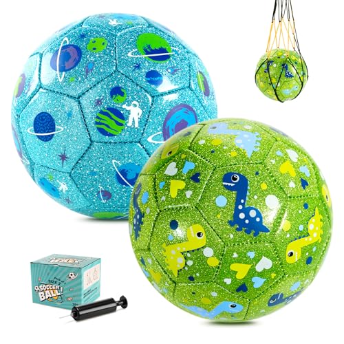 U&C Planet 2 Pack Size 2 Football for Kids Ages 1-6 Dinosaur & Planet Design Includes 1Hand Pumps & Mesh Bags Indoor Outdoor Play Toy Gift for Toddlers