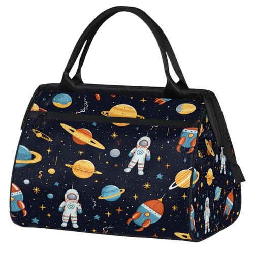 Mexpekil Sports Duffel Bag Space Stronaut Rocket Planet Gym Tote Bag Large Waterproof Travel Overnight Bags for Women Men Camping Dance Yoga Football Swimming