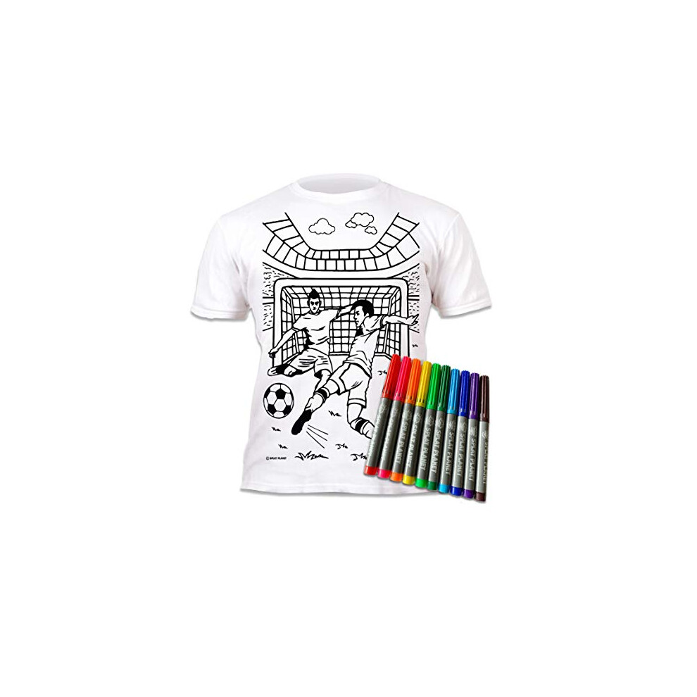 Splat Planet Colour-in Football T-Shirt with 10 Non-Toxic Washable Magic Colouring Pens - Colour-in and Wash Out T-Shirt (5-6 Years) White