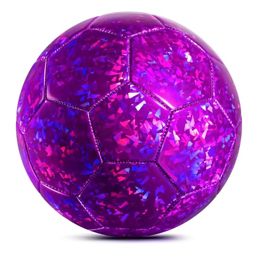 U&C Planet Girls Football Size 3 Soccer Ball Glitter Football with Shining Ice Patterns Durable PVC Soccerball with Pump for Children Indoor Outdoor Play, for Age 3-8