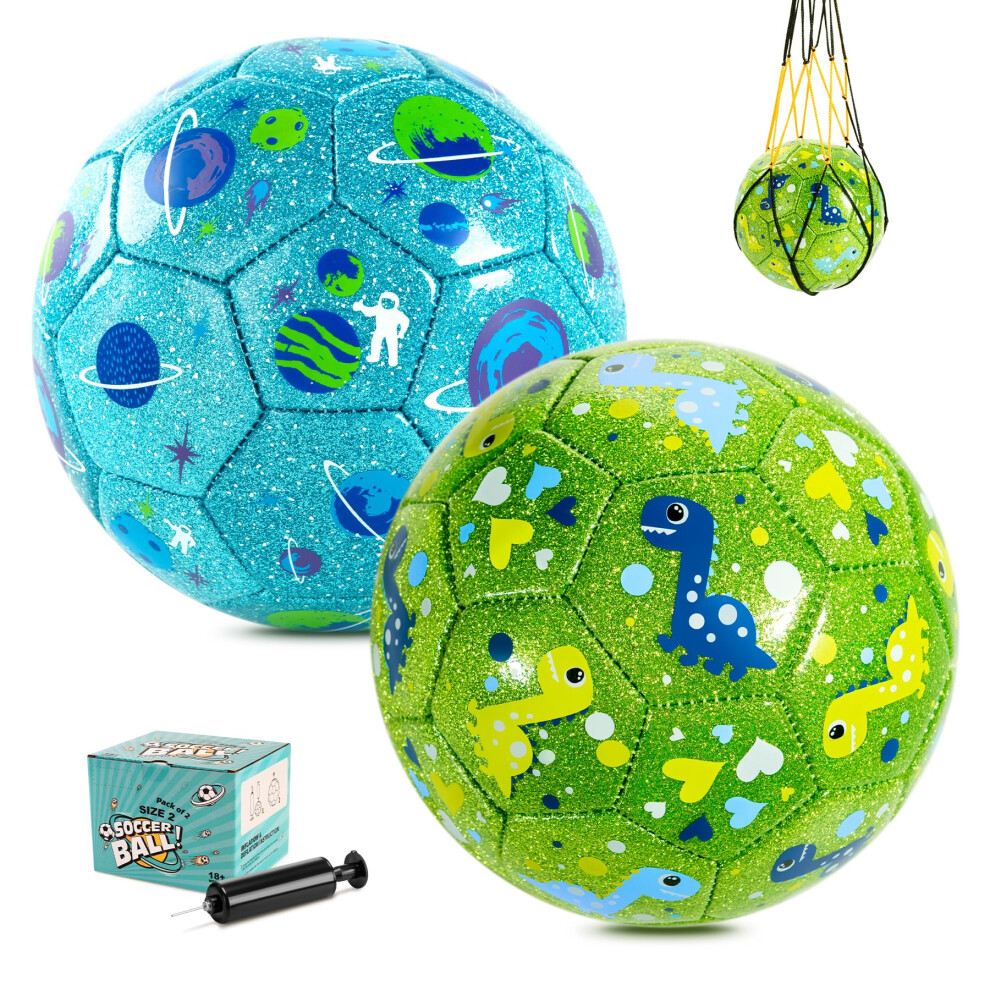 U&C Planet 2 Pack Size 2 Football for Kids Ages 1-6 Dinosaur & Planet Design Includes 1Hand Pumps & Mesh Bags Indoor Outdoor Play Toy Gift for Toddle