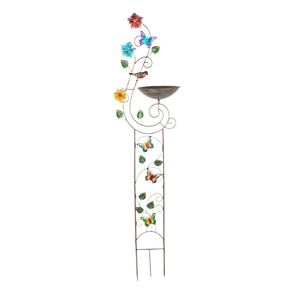 Tall Standing Bird Bath with Stake, Decorative Plant Support Water Feeder, 56.3x14.17x8.86 inches Artistic Garden Art for Courtyard, Lawn, Patio
