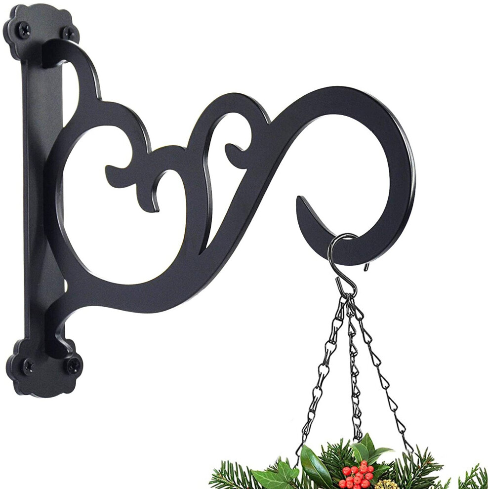 Iron Wall Mount Hook for Outdoor Plant Hanger Bird Feeder Flower Basket Black
