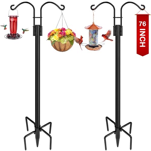 STAUKOK Double Shepherds Hooks for Outdoor, 2 Pack 76 Inch Bird Feeder Pole with 5 Prongs Base, Heavy Duty Garden Hook for Hanging Plant, Lantern, Hummingbird Feeder