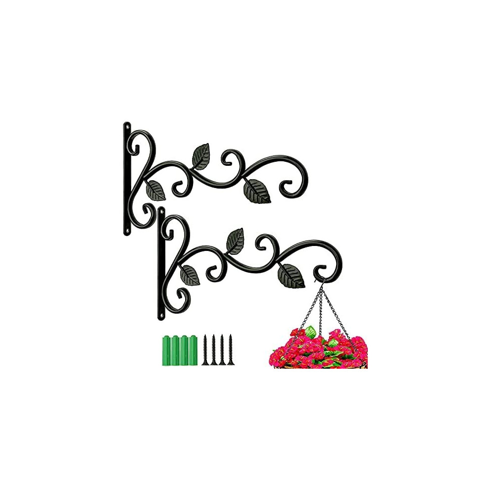 RHHGOPM 2 Pack Hanging Basket Brackets Outdoor, Heavy Duty Wall Brackets Hanging Basket Hook for Lanterns,Plant, Bird Feeder (3 leaves)