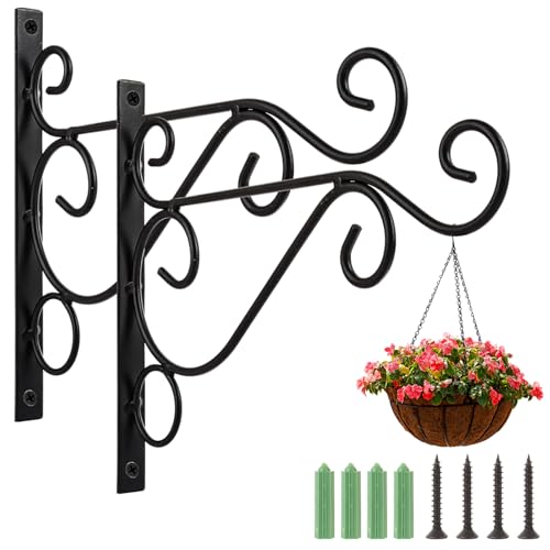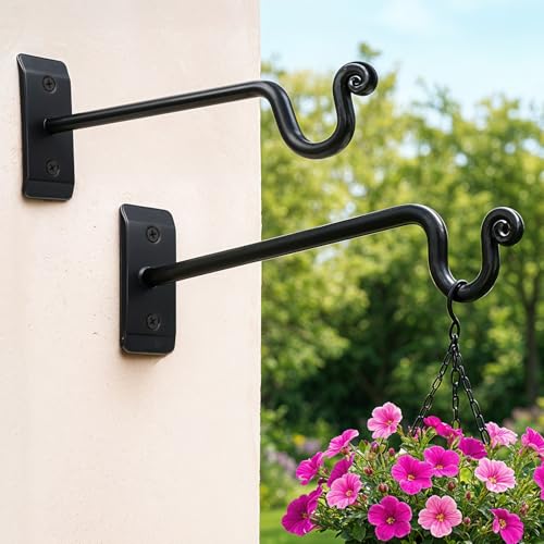 AUXHCYL 2Pcs Hanging Basket Brackets Outdoor,Hanging Baskets Plant Hooks,Iron Hanger Wall Hook for Lantern,Planter,Bird Feeder, Fence (Black)