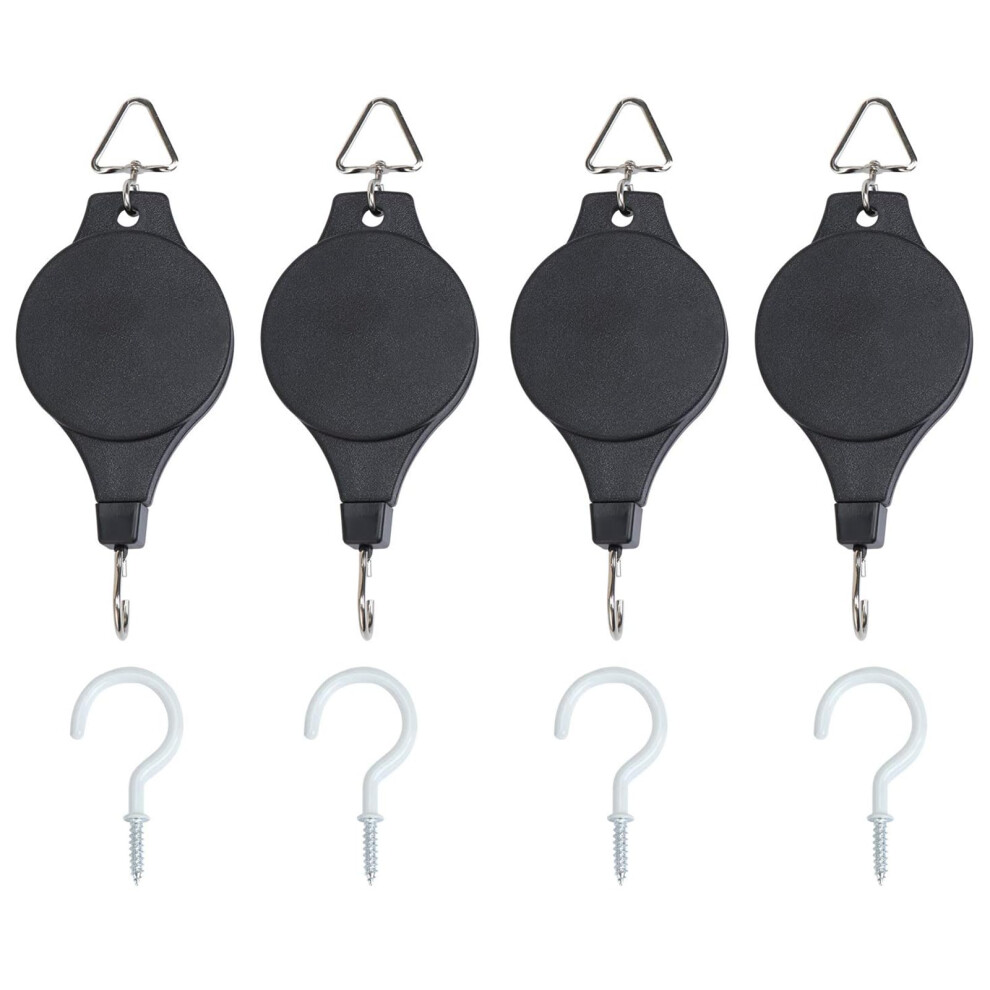 Fippy 4 PCS Hanging Basket Pulley, Adjustable Heavy Duty Plant Pulley Hook with 4PCS White Ceiling Hooks for Hanging Plant Baskets, Bird Feeder, Plant