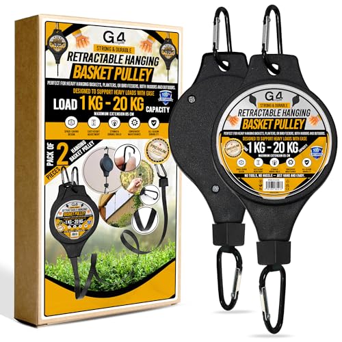 G4GADGET 2 Pack Hanging Basket Pulley Hooks – Adjustable Plant Hanger Pulley for Hanging Basket, Bird Feeder – Heavy Duty Retractable Garden Pulley System, Max Load 20kg