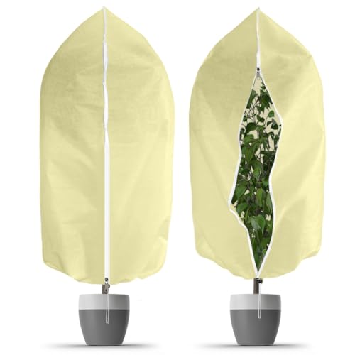 Garden Fleece Plant Frost Protection: 70GSM 2 Pack 80cm×100cm Horticultural Fleece with Zip Winter Plant Cover for Olive Tree Potted Palms Shrub Easy to Use Wind Protection Beige