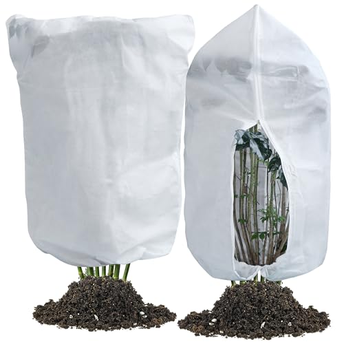 Muzhira 2pcs Plant Fleece Frost Protection Jackets, 50gms 120cm x 180cm Winter Garden Fleece Bag with Zipper, Plant Cover for for Potted Plant Winter Plant Protection, From Birds and Insects