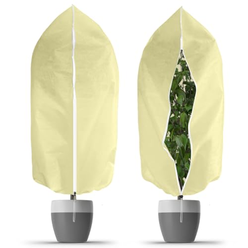 Garden Fleece Plant Frost Protection: 70GSM 2 Pack 100cm×120cm Horticultural Fleece with Zip Winter Plant Cover for Olive Tree Potted Palms Shrub Easy to Use Wind Protection Beige