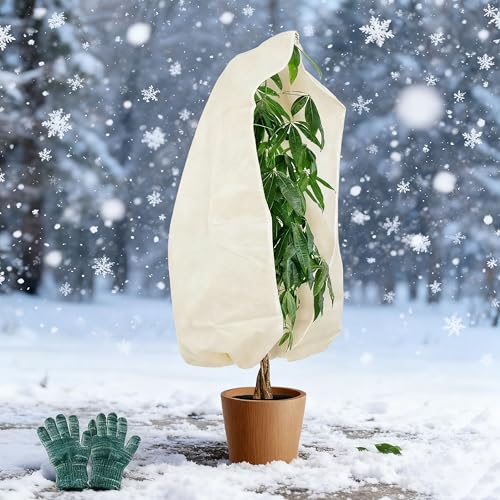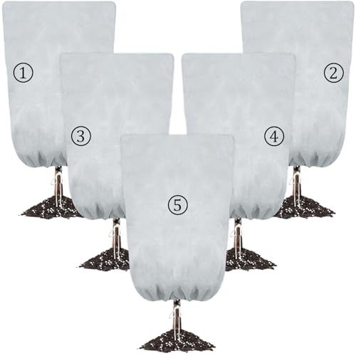 5PCS Thick Plant Fleece Frost Protection - 80x120cm 80gms with Drawstring,Winter Horticultural Jacket Blanket Fabric Cloth for Outdoor Fruit Olive Tree Bushes Shrub Potted Keep Warm,Garden Cover Bags