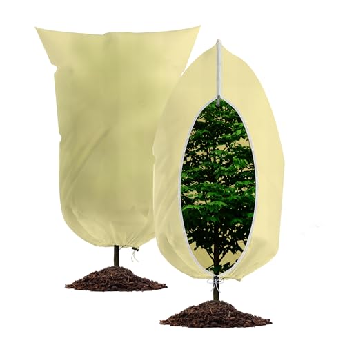 WISD Garden Fleece Frost Protection Bags - 80gsm Winter Plant Covers with Drawstring and Zipper - Plant Fleece Jacket for Outdoor Plants Trees Cold Weather (80 * 120cm,2 packs)