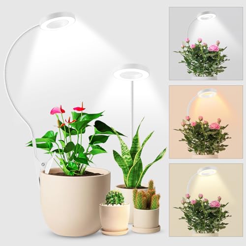 Akfldms Ring Grow Lights for Small Indoor Plants,Warm+White LED Full Spectrum Plant Light, Height Adjustable with Adapter