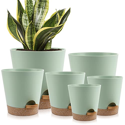 6 Pack Self Watering Pots Indoor, Plastic Flowers Pots for Indoor Outdoor Plants, Self Watering Planters With Drainage Hole and Saucers,Planter for Garden Plants,Plant Pots 8/7/6.5/6/5.5/5 Inch