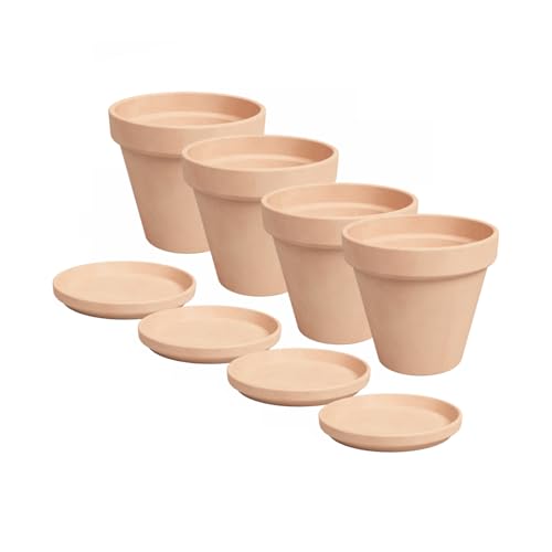 Whitefurze (4" Pot (Pack of 7)) Terracotta Colour Plastic Plant Flower Pots or Saucers - Various sizes 3" to 15"
