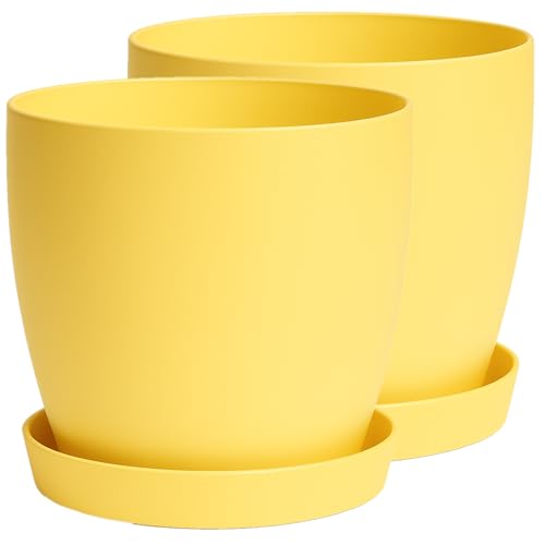 Home Garden Ornaments Plant Pots Indoor, Set of 2 with Saucers,6 Pastel Colours, Indoor Plant Pot, 8 Sizes (Yellow, 12cm / 4.7 inch)