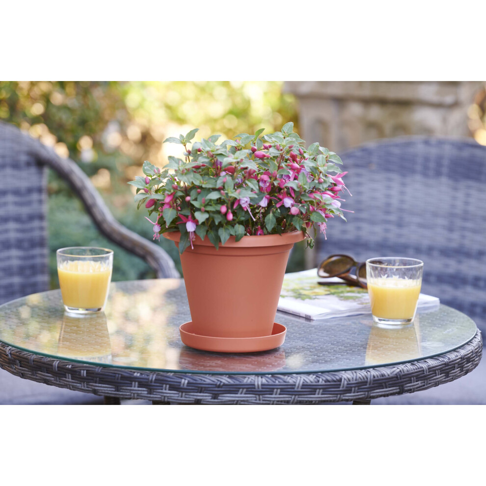 Terracotta Round Plant Pots w/ Drainage Trays 2 Set Flower Holder 20cm