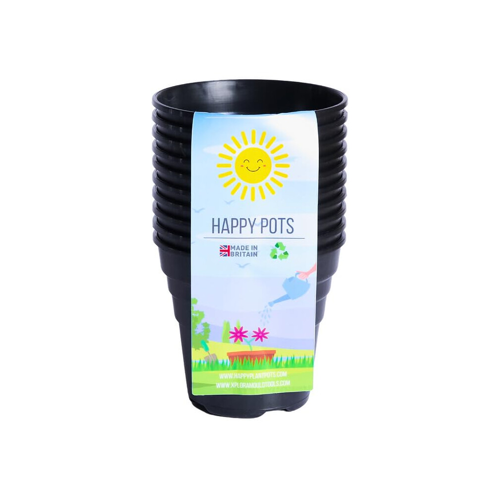 Happy Pots - 10cm Gloss Terracotta - Pack of 10 Premium Plastic Plant Pots - Reusable Flower Pots for Indoor/Outdoor Home Décor Gardening - Round, He