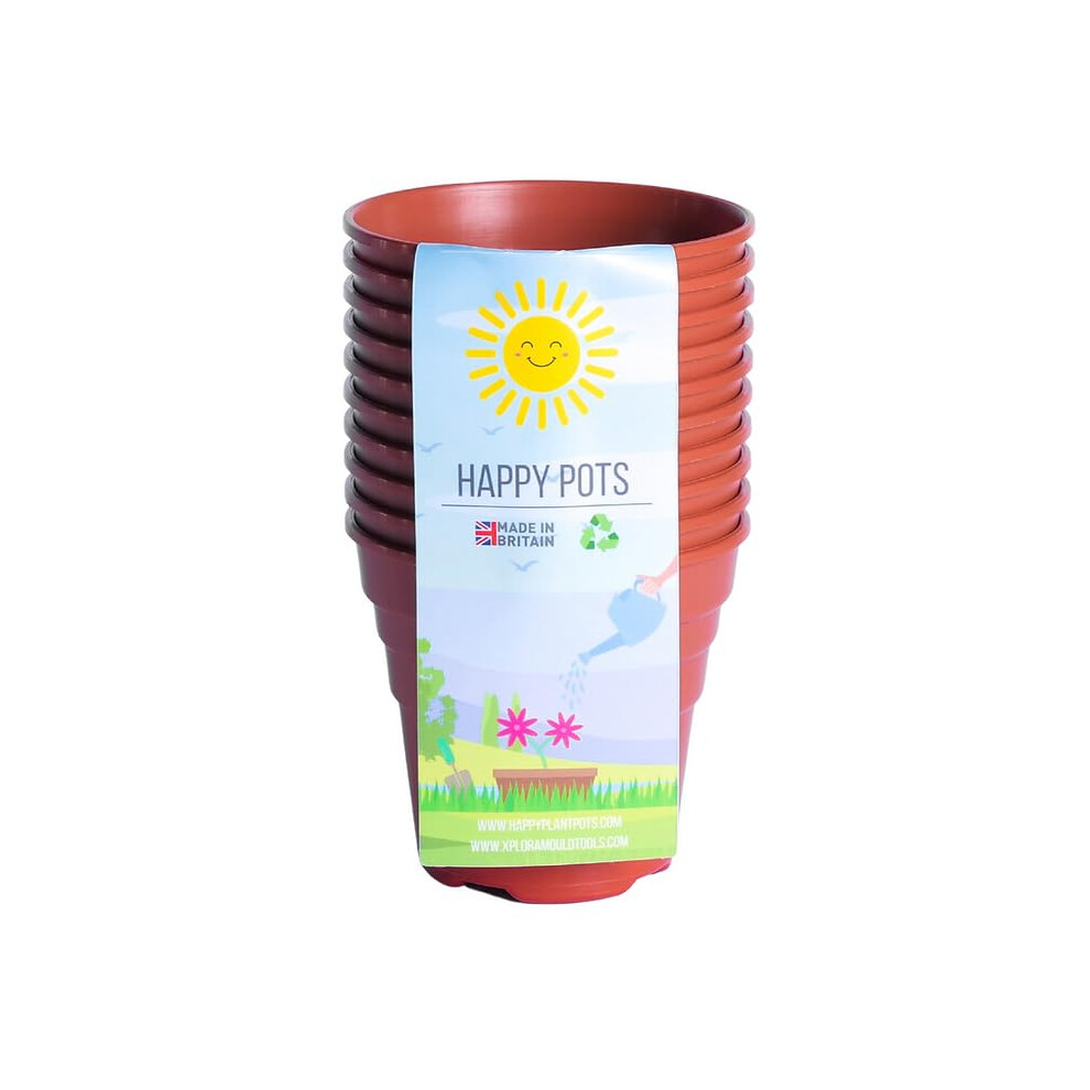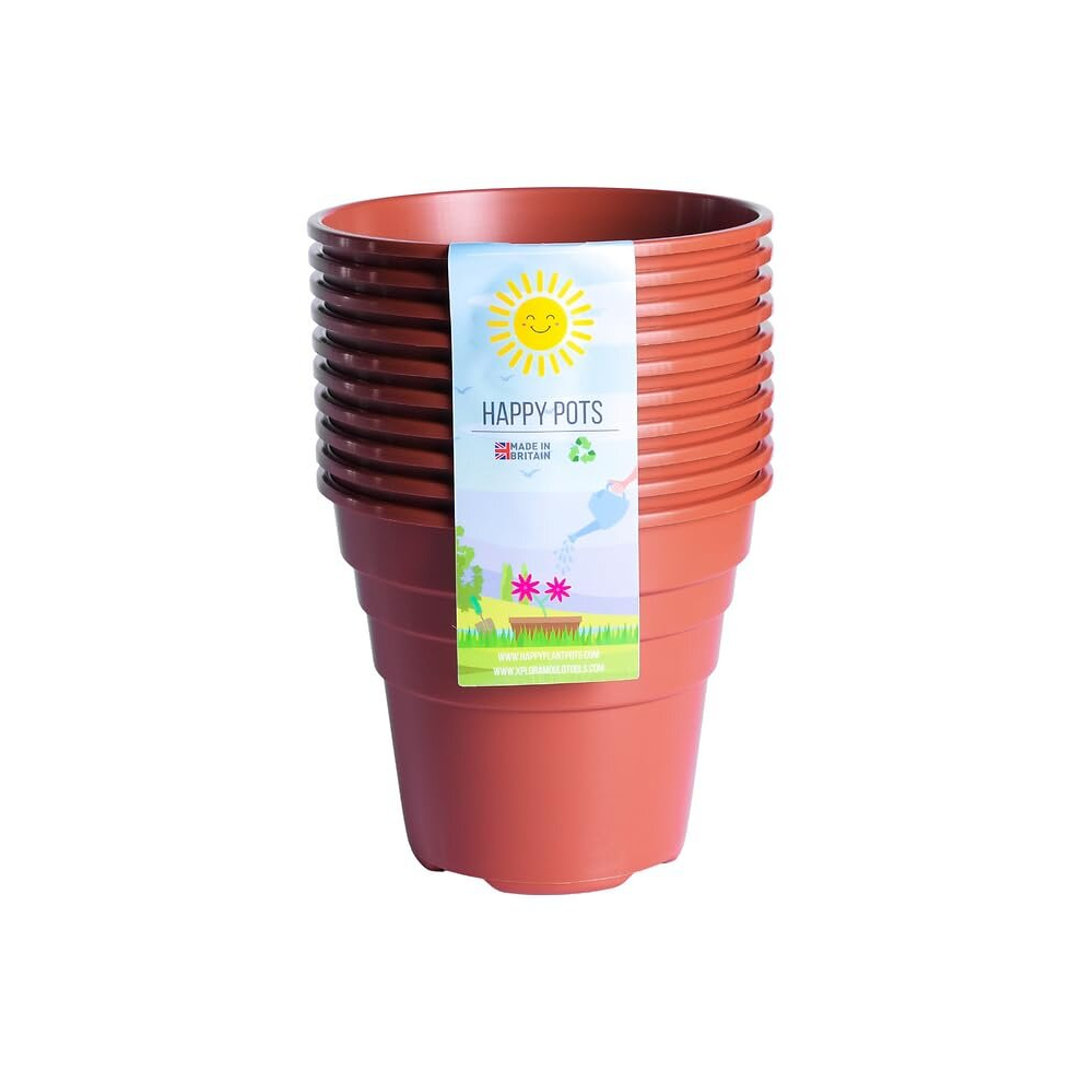 Happy Pots - 12.5cm Gloss Terracotta - Pack of 5 Premium Plastic Plant Pots - Reusable Flower Pots for Indoor/Outdoor Home Décor Gardening - Round, Heavy Duty, UV Resistant, Recyclable - Made in UK