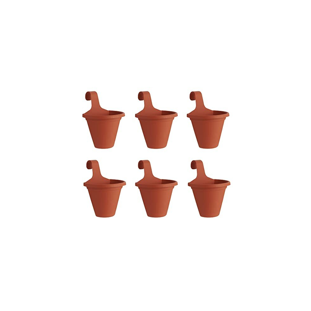 Clever Pots 6x Hanging Plant/Flower Pots Planters, with Self Watering Reservoir, Outdoor Plastic Pot for Garden Fence and Balcony Railing Decoration, Terracotta