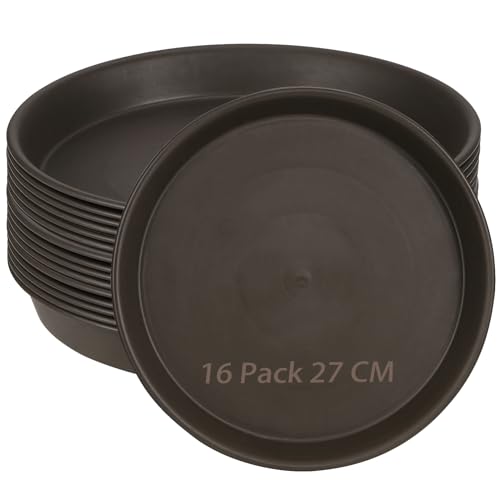 ZOENHOU 16 Pack 27 CM Plant Pot Saucers, Brown Round Large Thickened Plastic Plant Pot Trays Flower Drip Pot Trays for Indoor Outdoor Garden