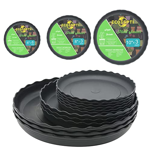 ECOESPTI 12Pcs Plant Saucer, 6 8 10 Inch Durable Plastic Plant Tray, Black Round Plant Pot Saucers, Drip Tray for Indoor and Outdoor Garden