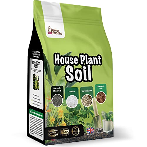Grow Buddha Houseplant Soil - Natural Indoor Houseplant Potting Compost Mix - Enriched with Special Nutrients - House Plant Potting Soil Compost Mix for Indoor Plants - Healthy Indoor Plant Soil (2L)