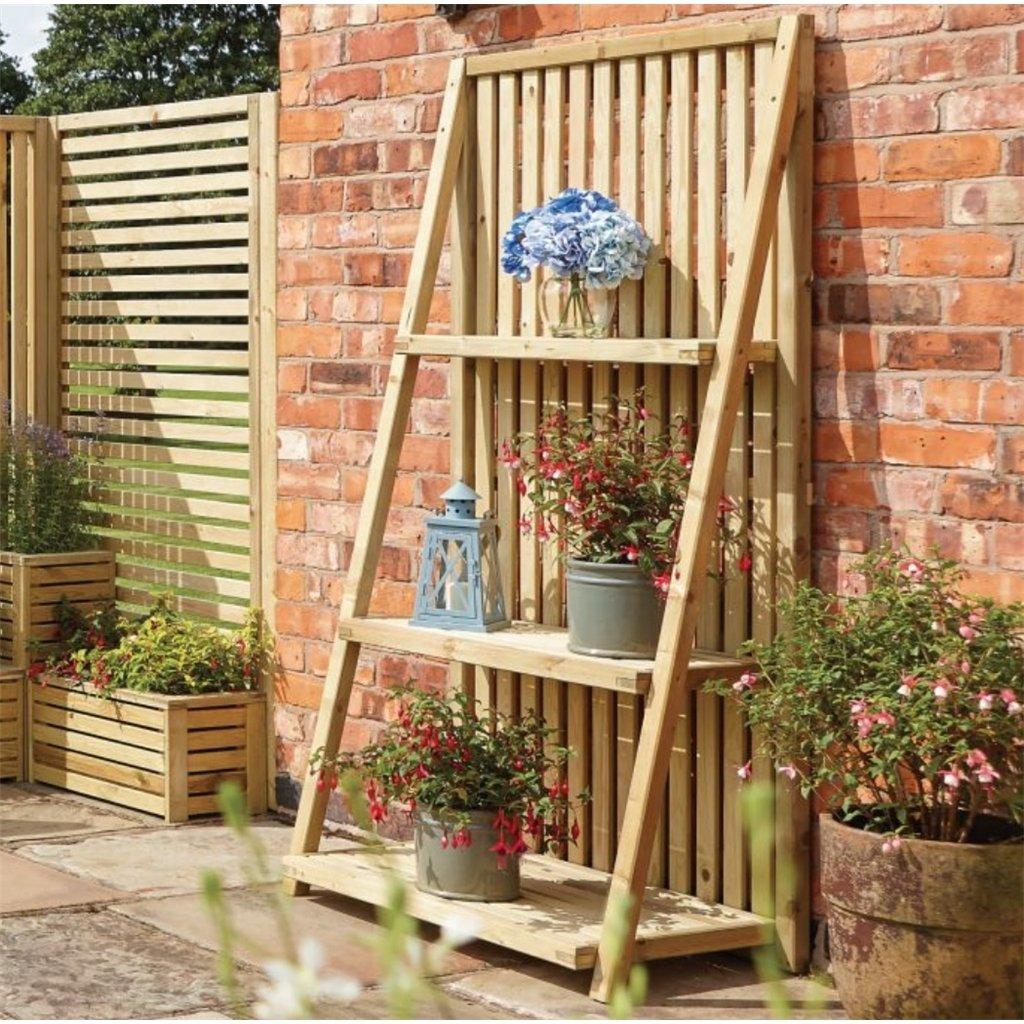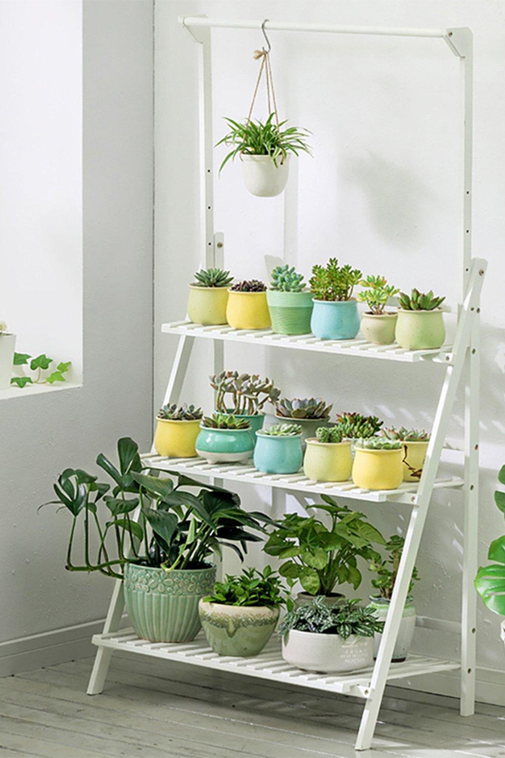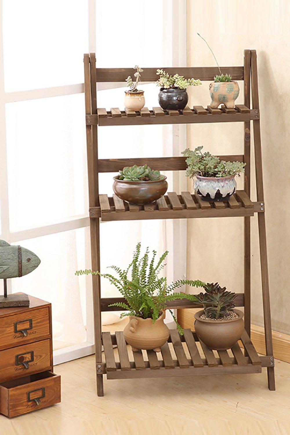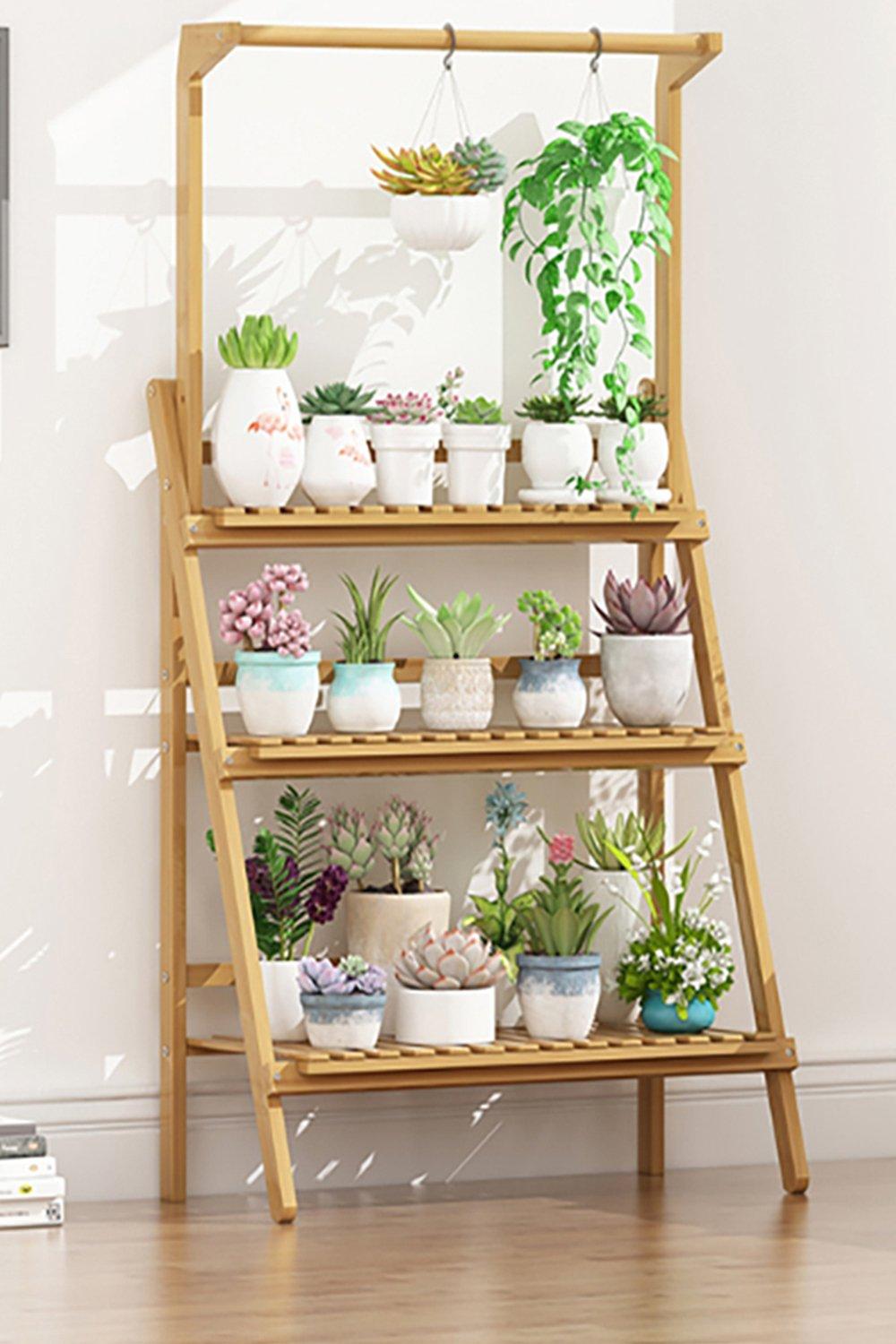 Flower Stand Plant Display Rack 3-Tier Foldable Wood Garden Patio