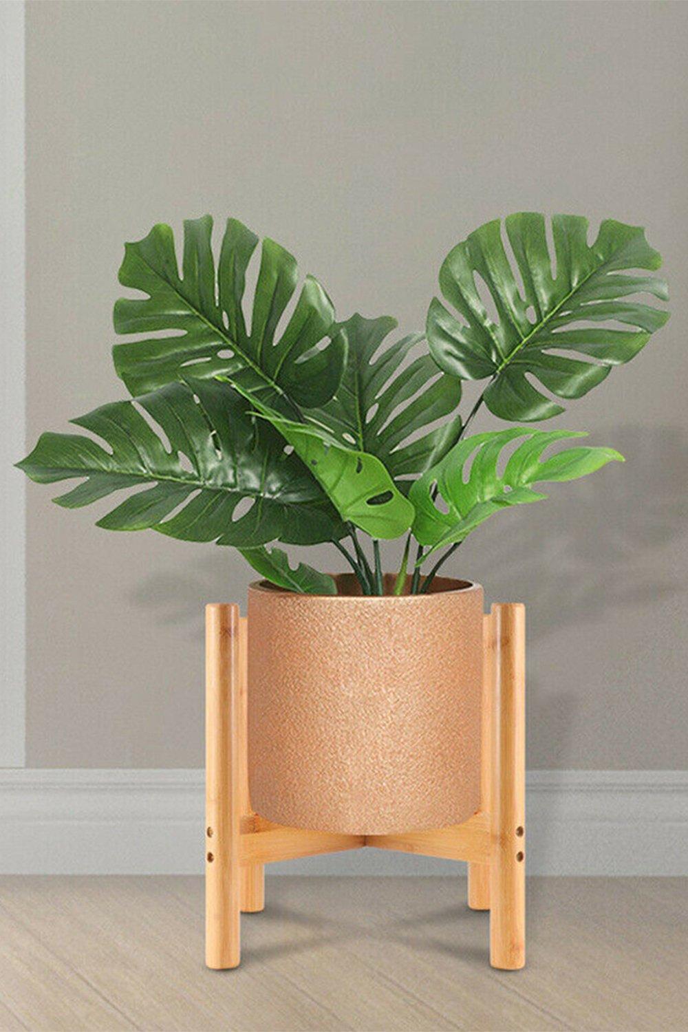Gold Ceramic Planter Bamboo Stand Plant Pot