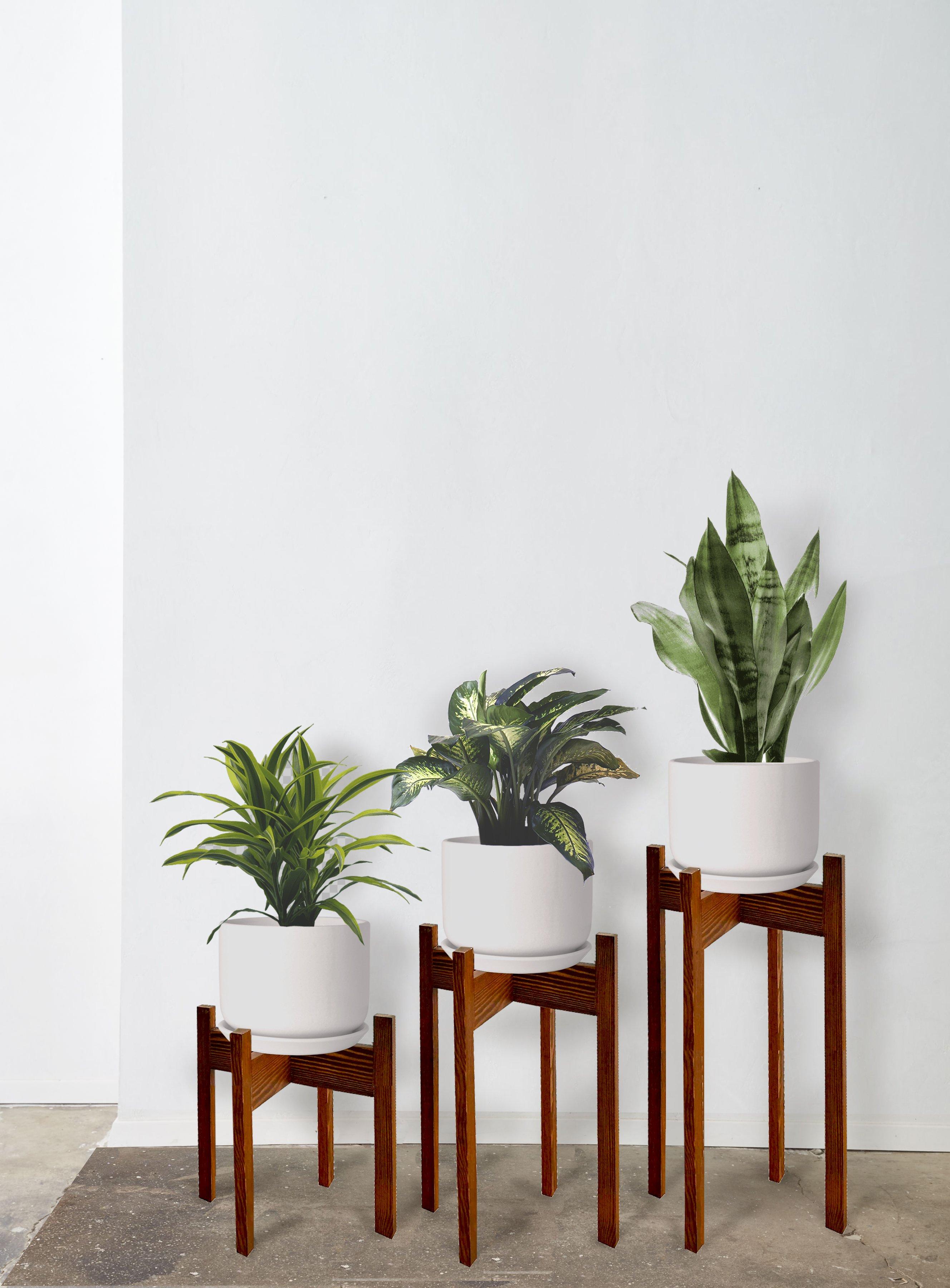 Utnel 3-Pieces Handmade Solid Wood Plant Stand Planter Set