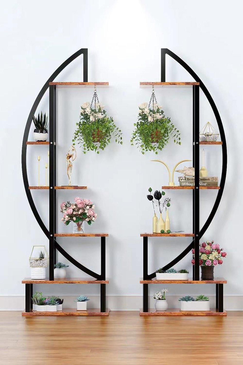8-Tier Plant Stand Curved Half Moon Shape Ladder Flowers Shelf with Hook