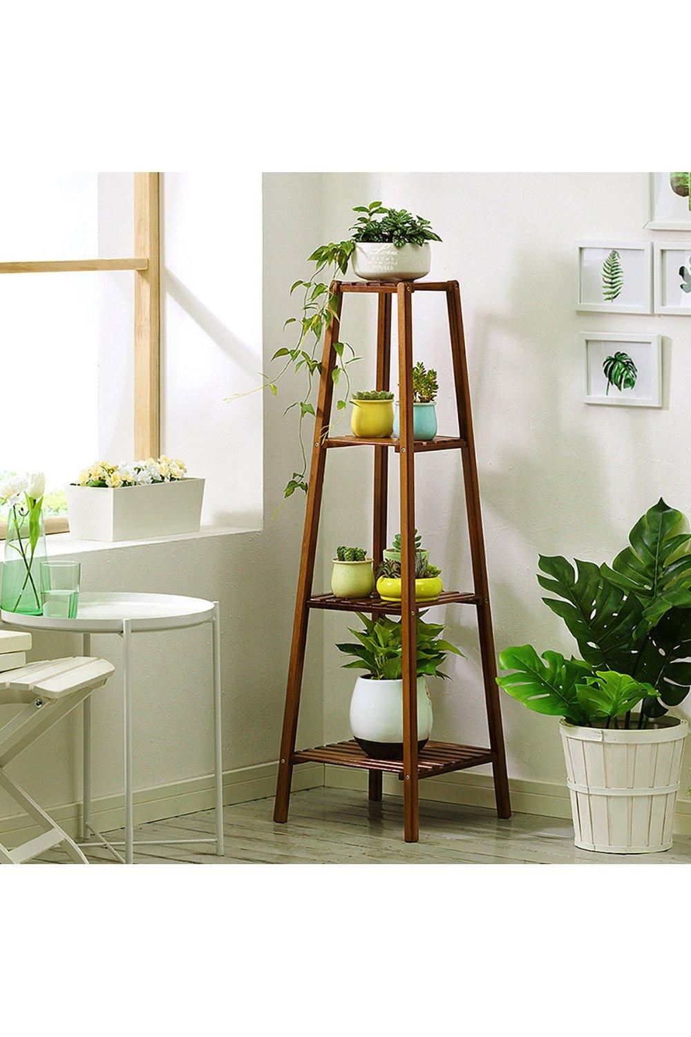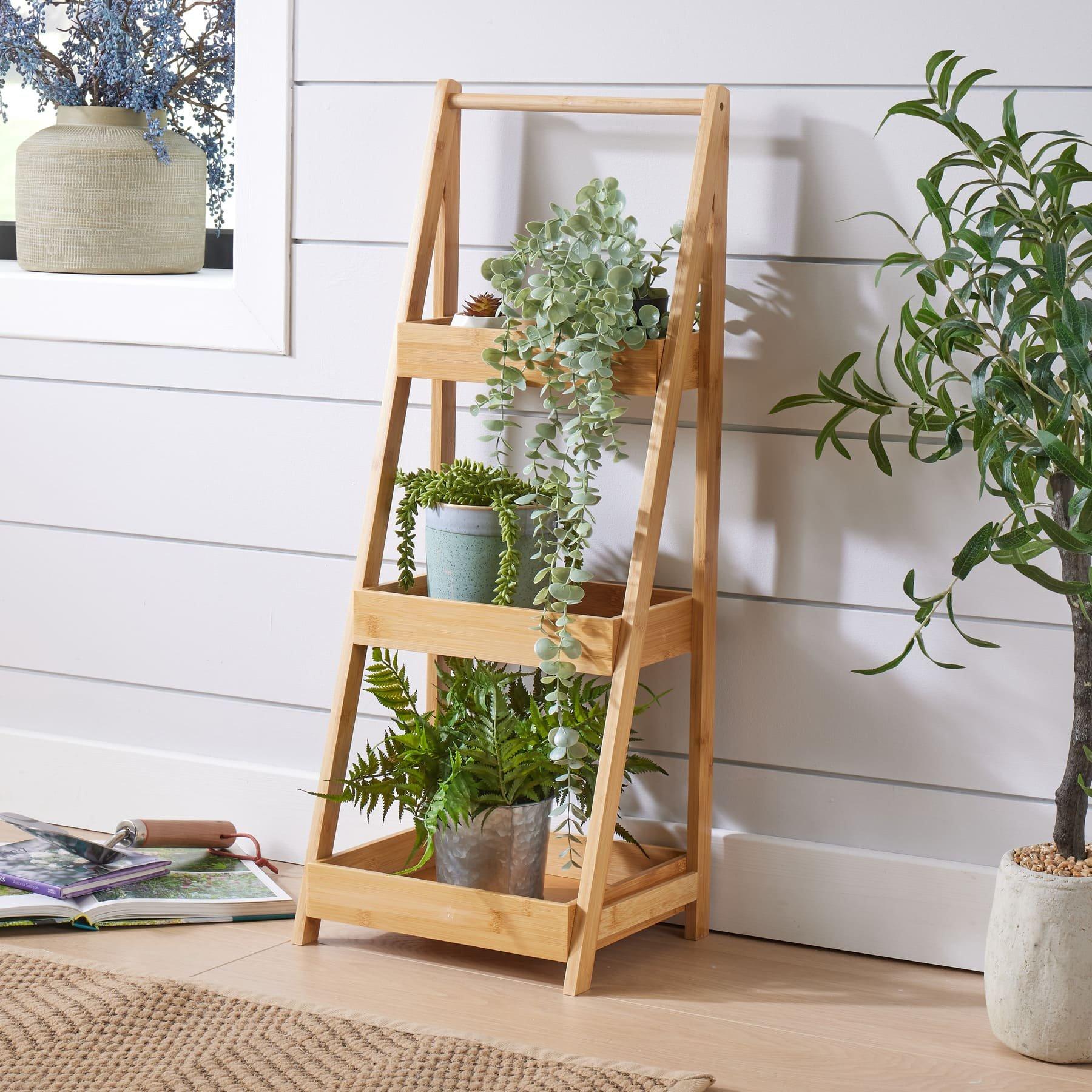 4-Tier Bamboo Ladder Bookshelf Freestanding Decorative Plant Flower Stand