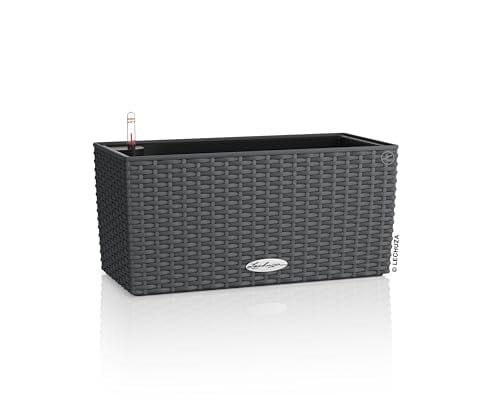 Lechuza - Balconera Cottage 40 Granite Planter, Balcony Box with Watering System, Water Level Indicator and Plant Insert, Wicker Look, 40 x 19 x 19 cm, 15471