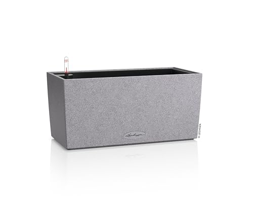 Lechuza - Balcony Planter Stone 40 Stone Grey, Balcony Box with Watering System, Water Level Indicator and Plant Insert, Stone Look, 40 x 19 x 19 cm, 15434