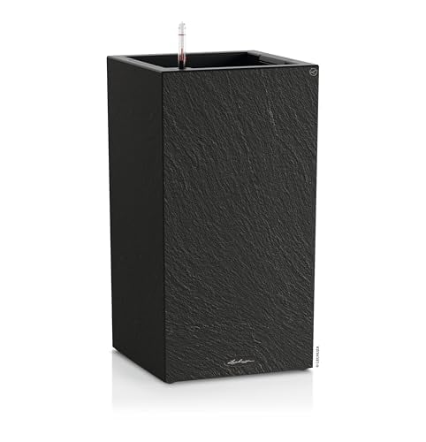 Lechuza - Canto Slatestone 30 15936 Planter with Watering System, Water Level Indicator and Plant Insert, Slate Look, 30 x 30 x 56 cm