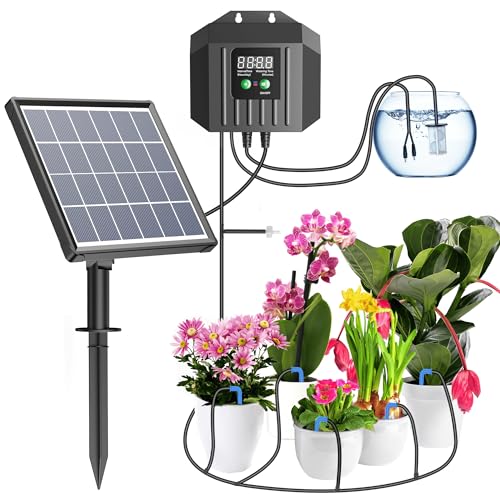 AnseTo Solar Irrigation System 10W Watering for Garden Plant Greenhouse,2025 Latest Model Drip Kit DIY Automatic with 30 Drippers/Auto Alarm Mode