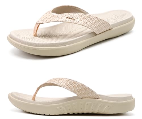 KuaiLu Womens Flip Flops Ladies Yoga Mat Comfortable Walking Thong Sandals with Plantar Fasciitis Arch Support Slip On Indoor Outdoor for Summer, Beige Size 7