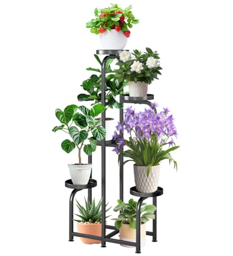 shsyue Plant Stand Indoor Outdoor, 4 Tier 5 Pot Tall Metal Flower Holder Shelf,Heavy Duty Planter Shelving for Multiple Plants, Corner Display Rack for Living Room Balcony Garden Patio