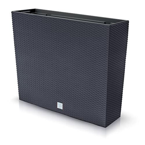 URBN GARDEN Tall Rectangle Rattan Floor Standing Planter Indoor Outdoor Patio Plant Pot Trough (Anthracite)