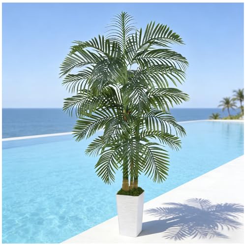 TXABL Golden Cane Artificial Palm Tree Indoor 7FT Outdoor Artificial Plants Tree with White Planter, Tall Fake Tropical Paradise Palm Trees for Living Room Patio Poolside Office Home Decor