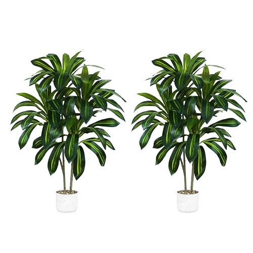 TXABL 2PCS Dracaena Artificial Tree 120cm Tall Fake Tree Artificial Plants Indoor with White Planter, 4FT Floor Plant Faux Yucca Tree in Pot for Outdoor Home Office Living Room Bedroom Farmhouse