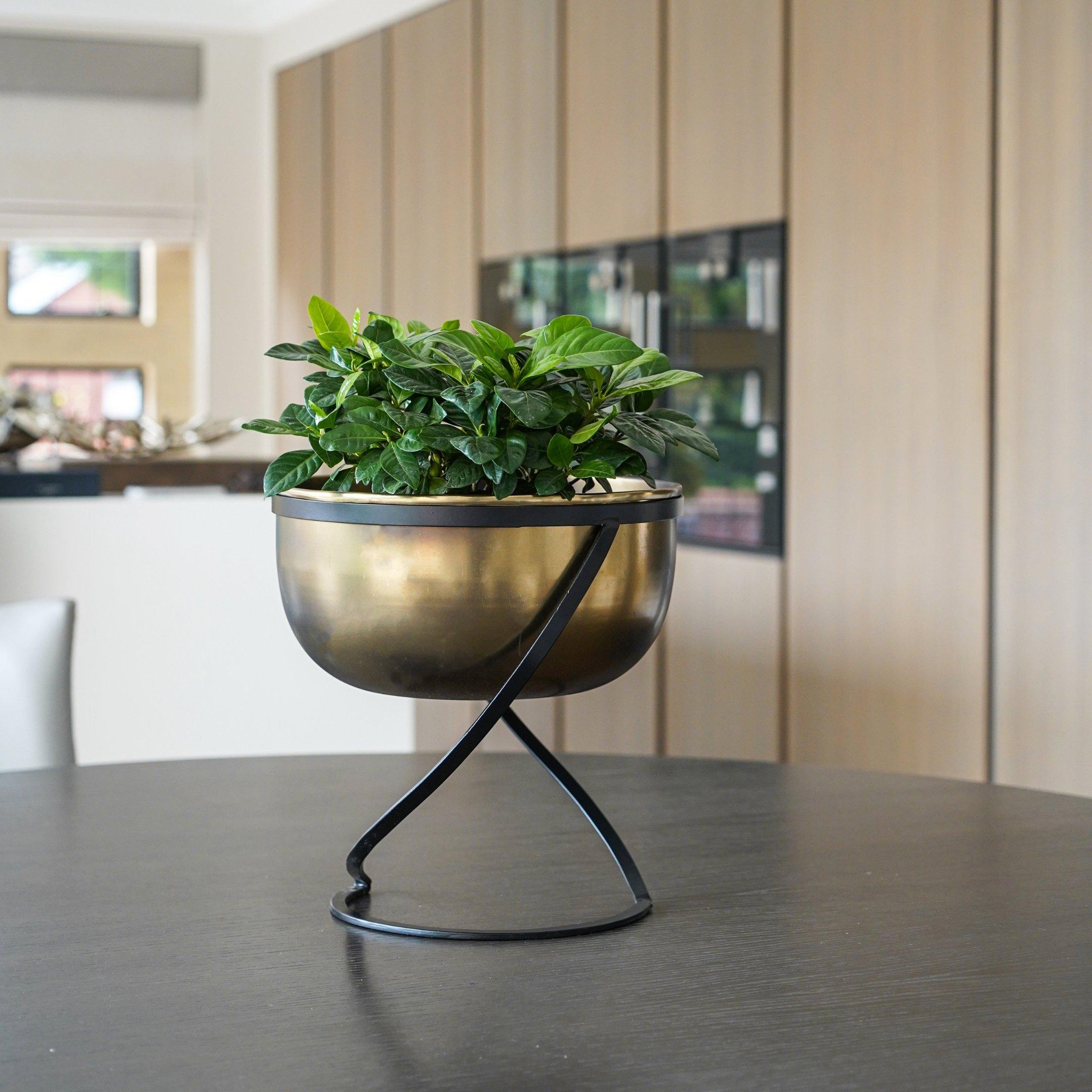 Indoor Kensington Brass Metal Round Planter on Stand, H30cm W28cm