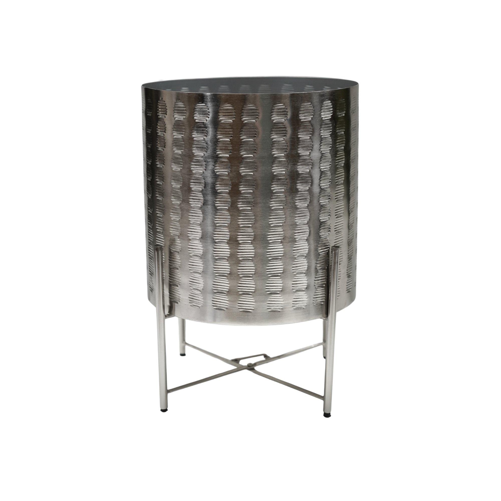 Zendaya Silver Embossed Metal Planter with Stand, H25cm x D25cm