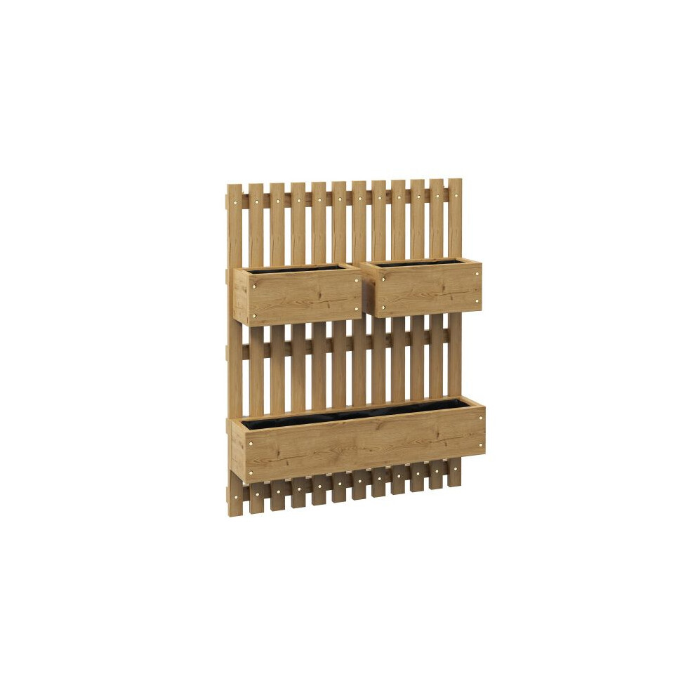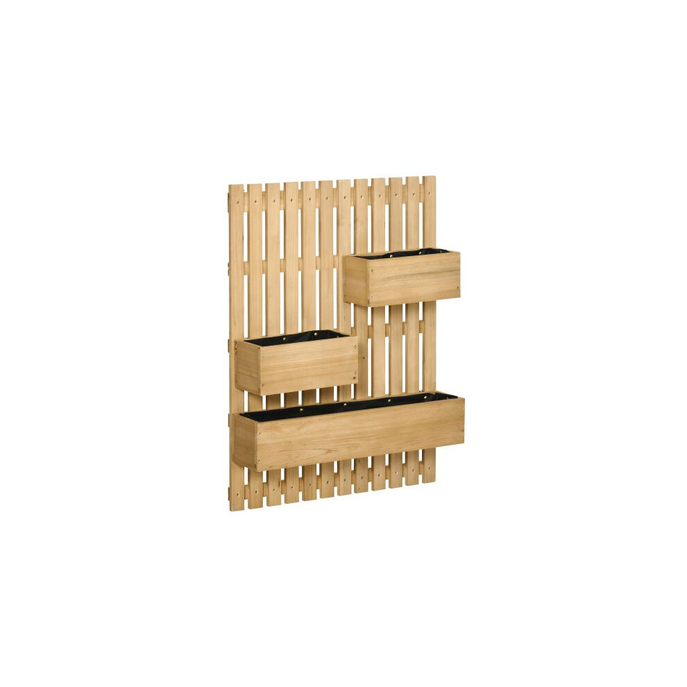 Outsunny Wall-mounted Wooden Garden Planters with Trellis, Drainage Holes and 3 Planter Boxes for Patio, Natural
