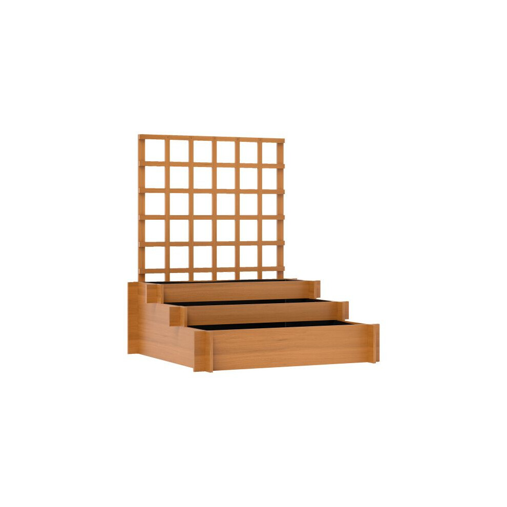 Outsunny 3 Tier Garden Planters with Trellis for Vine Climbing, Wooden Raised Beds, 95x95x110cm, Brown