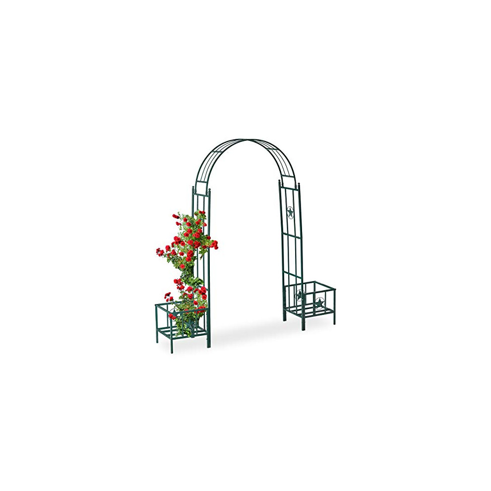 Relaxdays Rose Arch with Planters, Weatherproof, Metal Trellis, Climbers Support, Garden, HWD 226x204x45 cm, Green